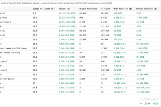 We replicate Artemis & Lightspark data and audit the top wallets, revealing retail-sized transfers by count, but an intermediary- and wholesale-led…